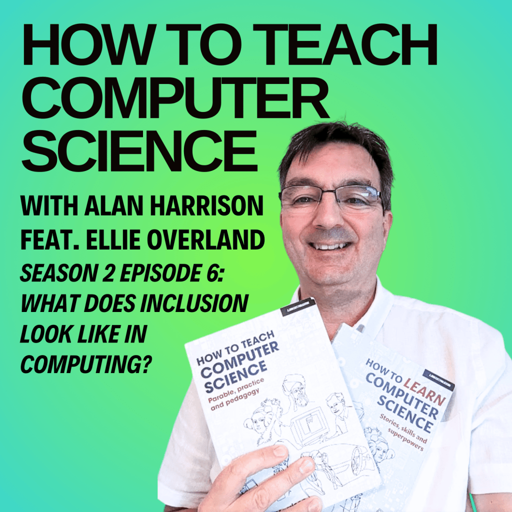 Alan: Yeah, so at that point, I’m going to do my no gatekeeping speech, because I really I think I’ve mentioned this on the podcast before, but, I’m really not keen on schools that say, Oh, well, you can only do computer science GCSE if you’ve got prediction of six in maths or whatever, which is not particularly inclusive, and some of my best students have not had a very high maths grade, and there’s some evidence that computing ability correlates more with language.
